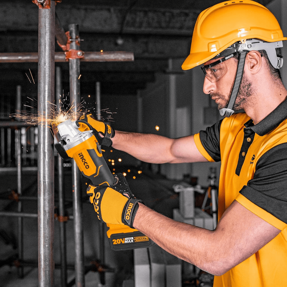 Experience the freedom of cordless with the Ingco 4.5"/115mm Lithium-Ion Cordless Angle Grinder. Crafted for versatility and convenience, this cordless angle grinder is designed to handle various cutting, grinding, and polishing tasks without the hassle of cords. With its lithium-ion battery, you can work efficiently without being tied to a power outlet. The compact design and ergonomic handle ensure comfortable use, and the 115mm size is perfect for a range of applications. Elevate your tasks with the quality and reliability of Ingco.