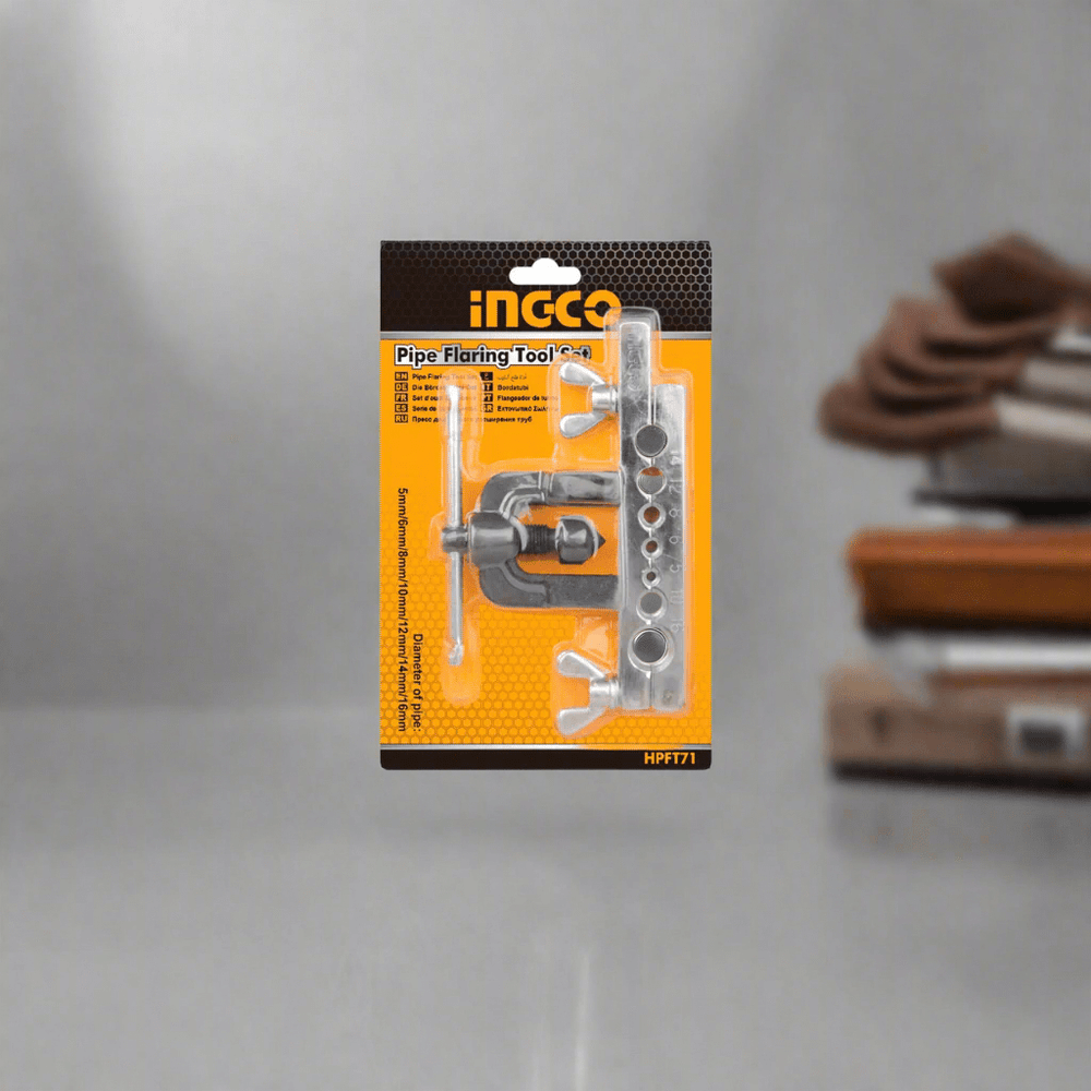 The Ingco Pipe Flaring Tool Set - HPFT71 is your go-to solution for creating accurate and durable flares in soft copper, aluminum, brass, or thin-walled steel tubing. Designed for both professional plumbers and HVAC technicians, this set allows for quick and clean 45° flaring, ensuring tight, leak-proof connections every time.