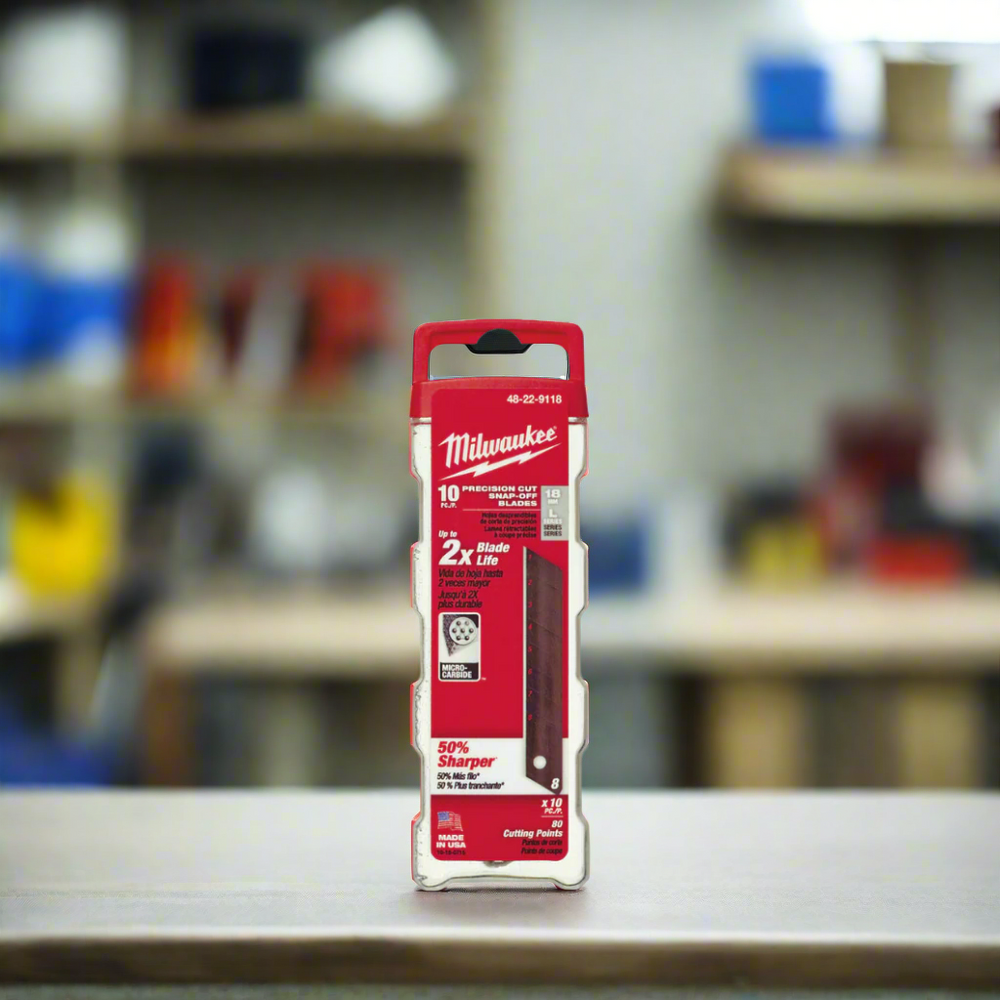 The Milwaukee 48229118 18 mm Precision Snap-Off Blades are a high-performance, durable choice for any tradesperson who needs reliable, sharp cutting edges. With enhanced sharpness, extended life, and compatibility with standard knives, they’re a smart upgrade for your inventory.