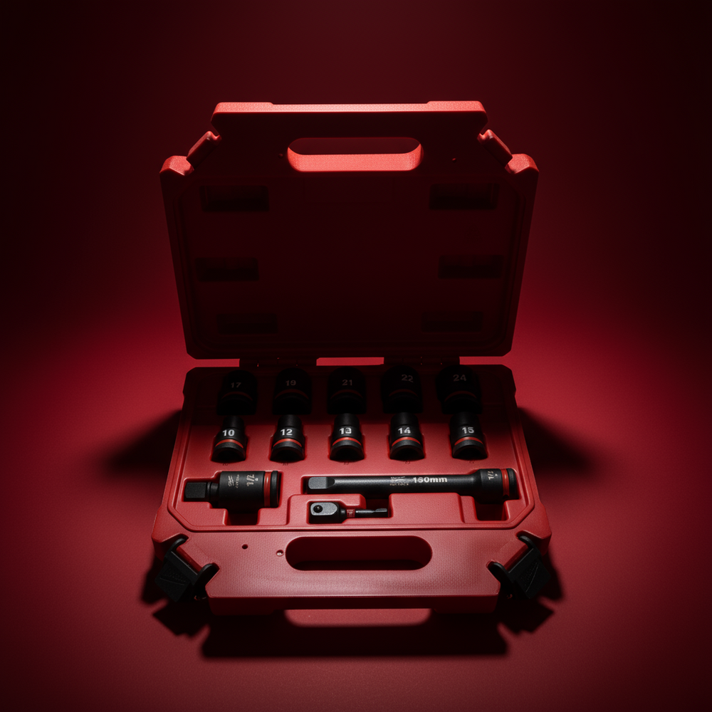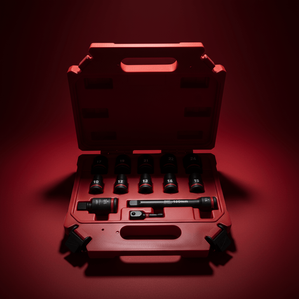 Engineered for professionals who demand precision, durability, and organized storage, the Milwaukee 13-Piece Shockwave Impact Duty Socket Set offers a complete solution for impact fastening. Each socket is built from high-grade Chrome-Molybdenum steel for extreme strength and torque resistance, ensuring consistent performance under tough job site conditions. The set includes a variety of standard sockets, a universal joint, an adapter, and an extension — all neatly arranged in a durable foam insert for efficient storage and easy access.