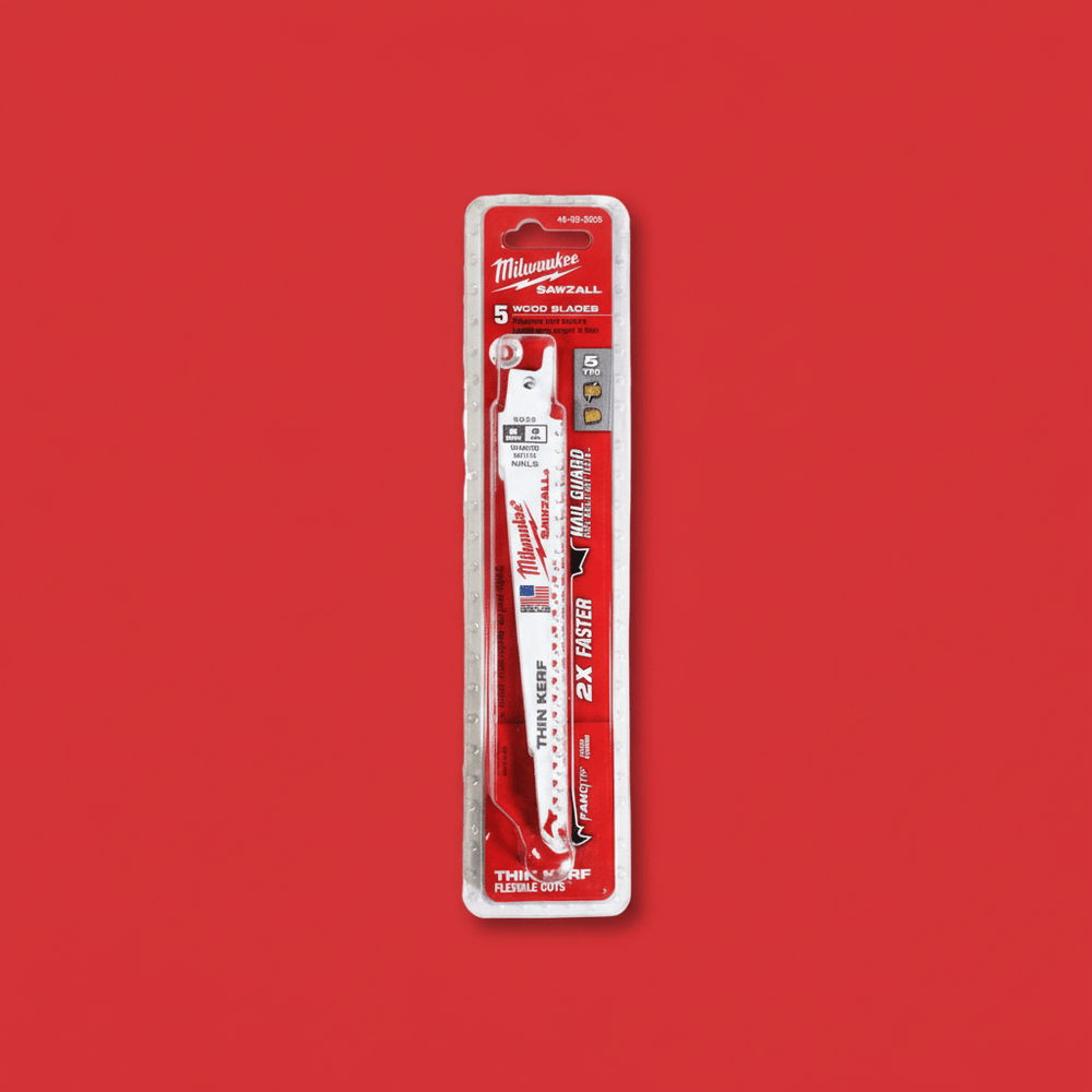 The Milwaukee 5 Pieces 6'' x 5 TPI Sawzall Blade is engineered for fast, aggressive cutting through wood with nails, metal, and other tough materials. Designed for professional demolition and construction use, each blade provides exceptional durability, precision, and cutting speed. Its optimized tooth geometry ensures smoother operation and longer blade life, making it a reliable choice for demanding jobs.
