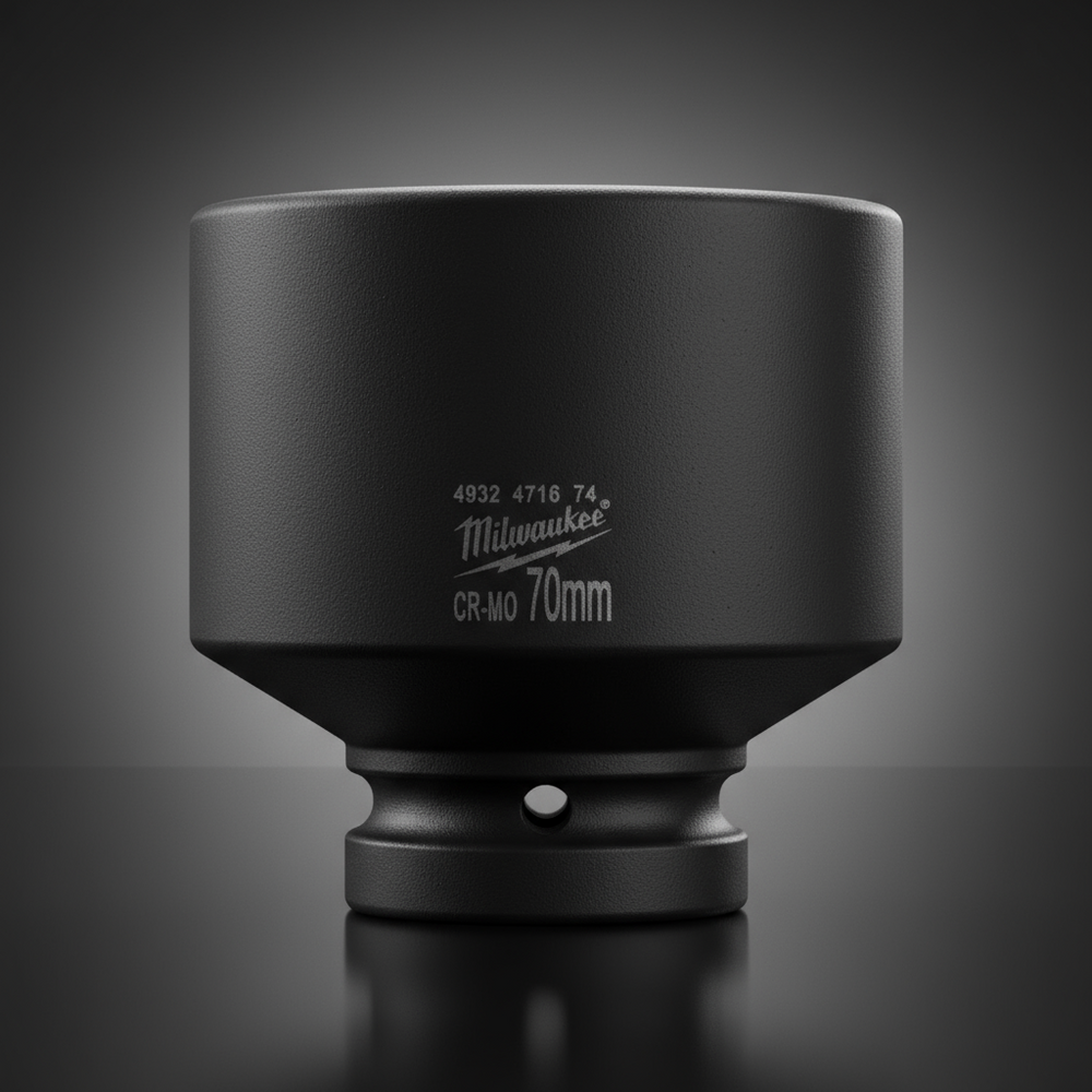 The Milwaukee 70mm Shockwave Impact Socket delivers outstanding torque strength, precision, and long-term durability for heavy-duty fastening applications. Crafted from high-strength alloy steel, it ensures a tight fit, smooth torque transfer, and superior resistance to wear — a dependable tool for professionals working in industrial, construction, and automotive environments.