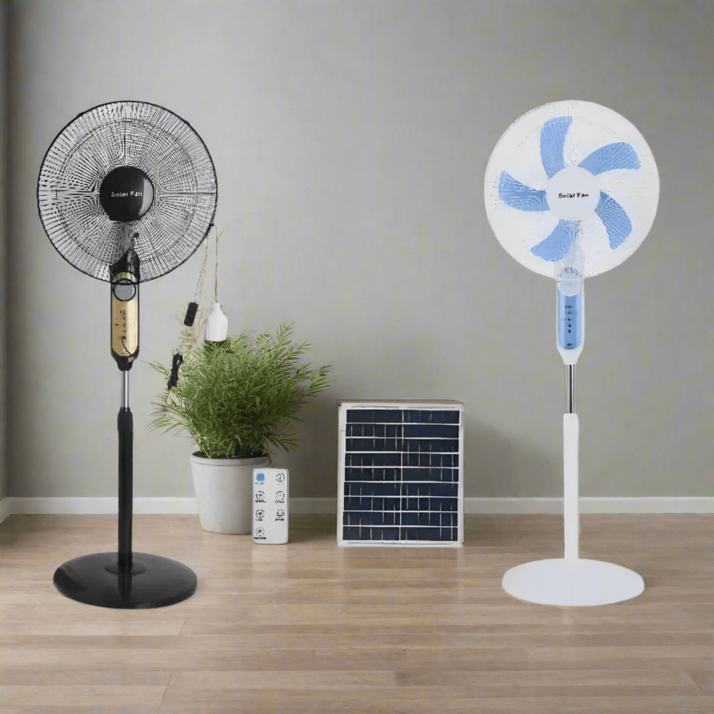 The Rechargeable 16" Solar Fan 25W - C218 delivers strong, consistent airflow with a 25W motor and built-in solar charging capability. Designed for both home and outdoor use, it features a long-lasting battery, adjustable speed settings, and energy-efficient performance—perfect for areas with unreliable power supply.