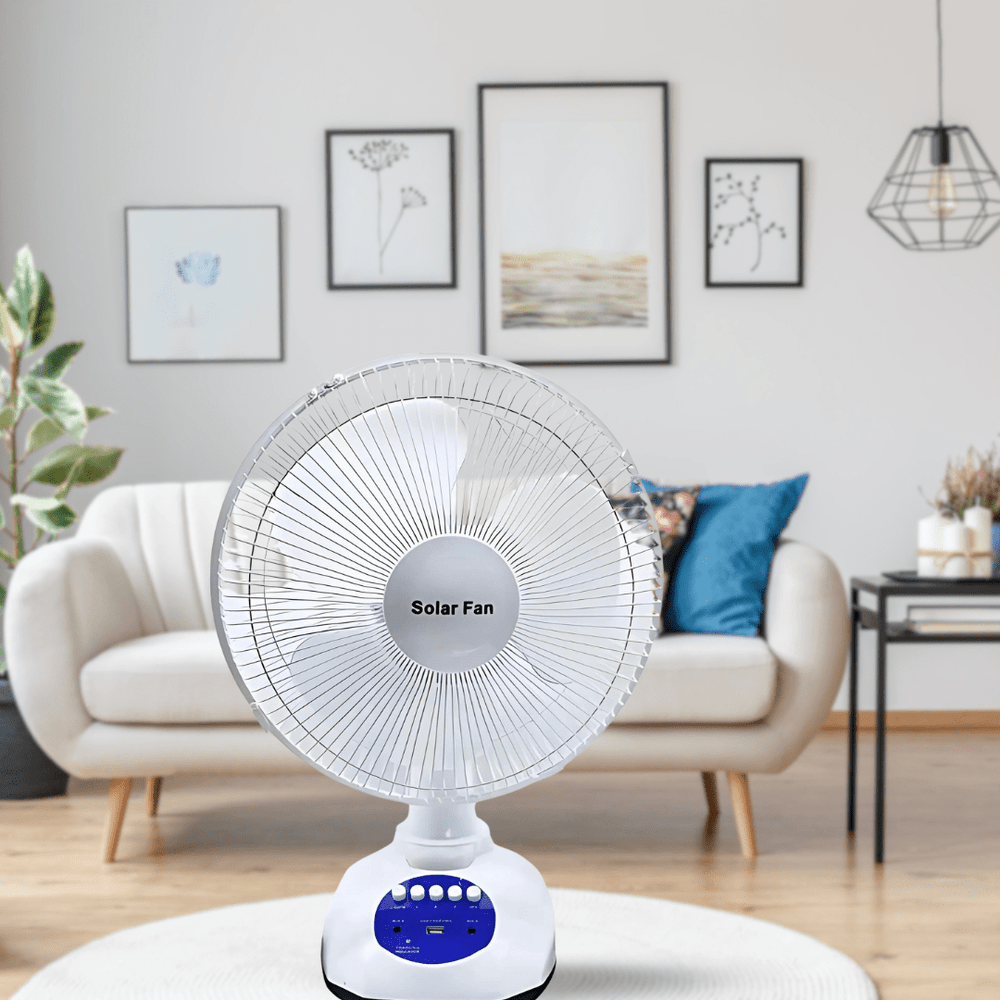 Stay cool anywhere, anytime with the C108 Rechargeable 16-Inch Solar Fan — a reliable, energy-efficient solution designed for homes, shops, and outdoor spaces. With solar and AC charging options, this fan delivers powerful airflow, even during power outages.