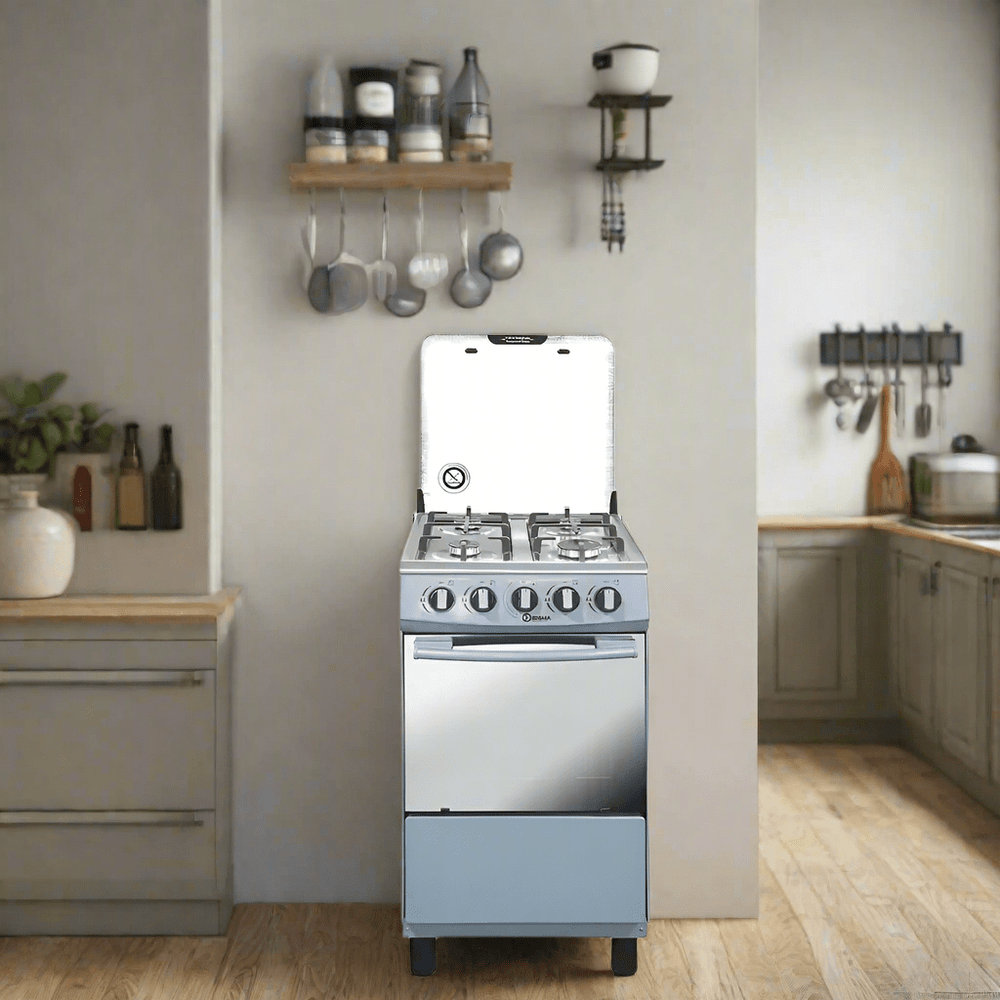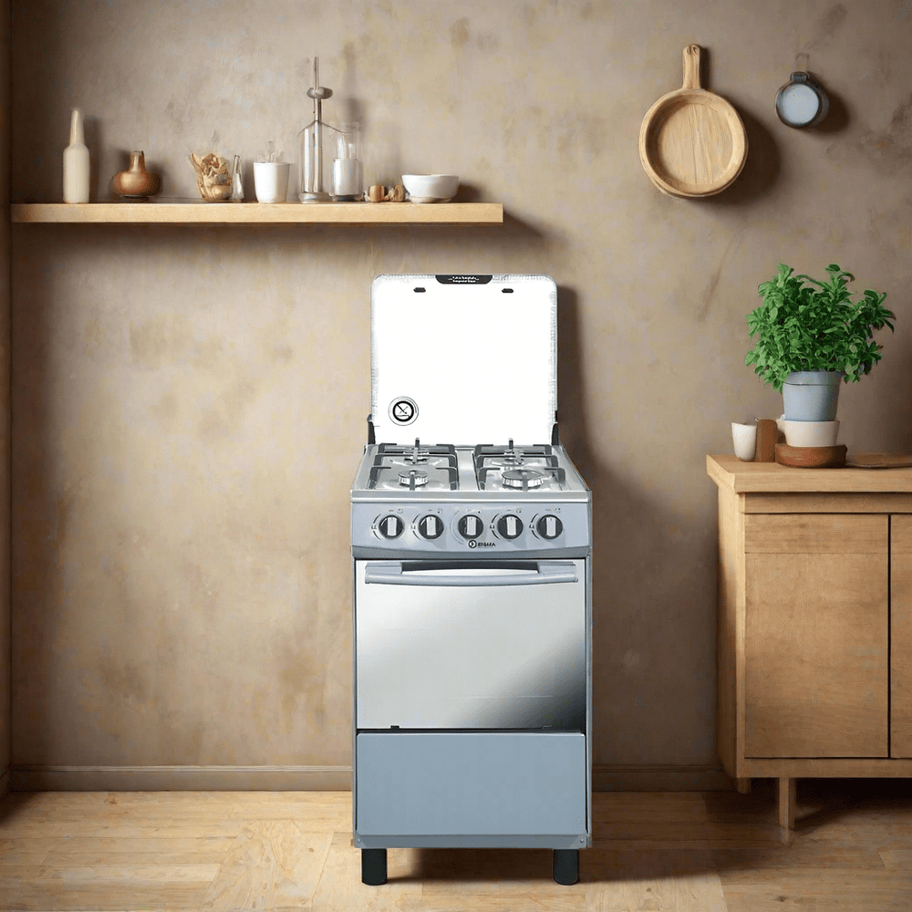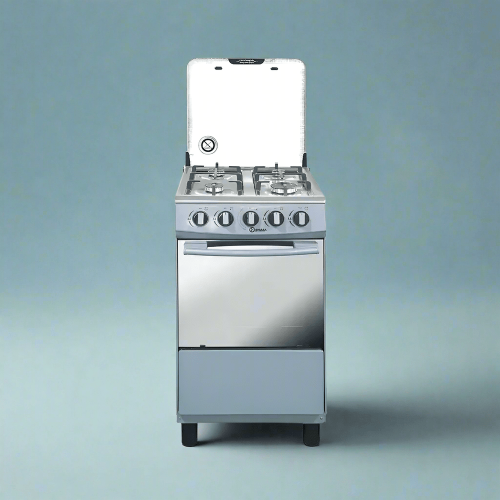 Cook smarter with the Sigma 50x50cm 3+1 Cooker, featuring 3 gas burners and 1 electric burner, perfect for flexibility during power outages or mixed cooking needs. Its durable grey stainless steel body includes a gas oven and grill, cast iron supports, and auto ignition for convenience and safety.