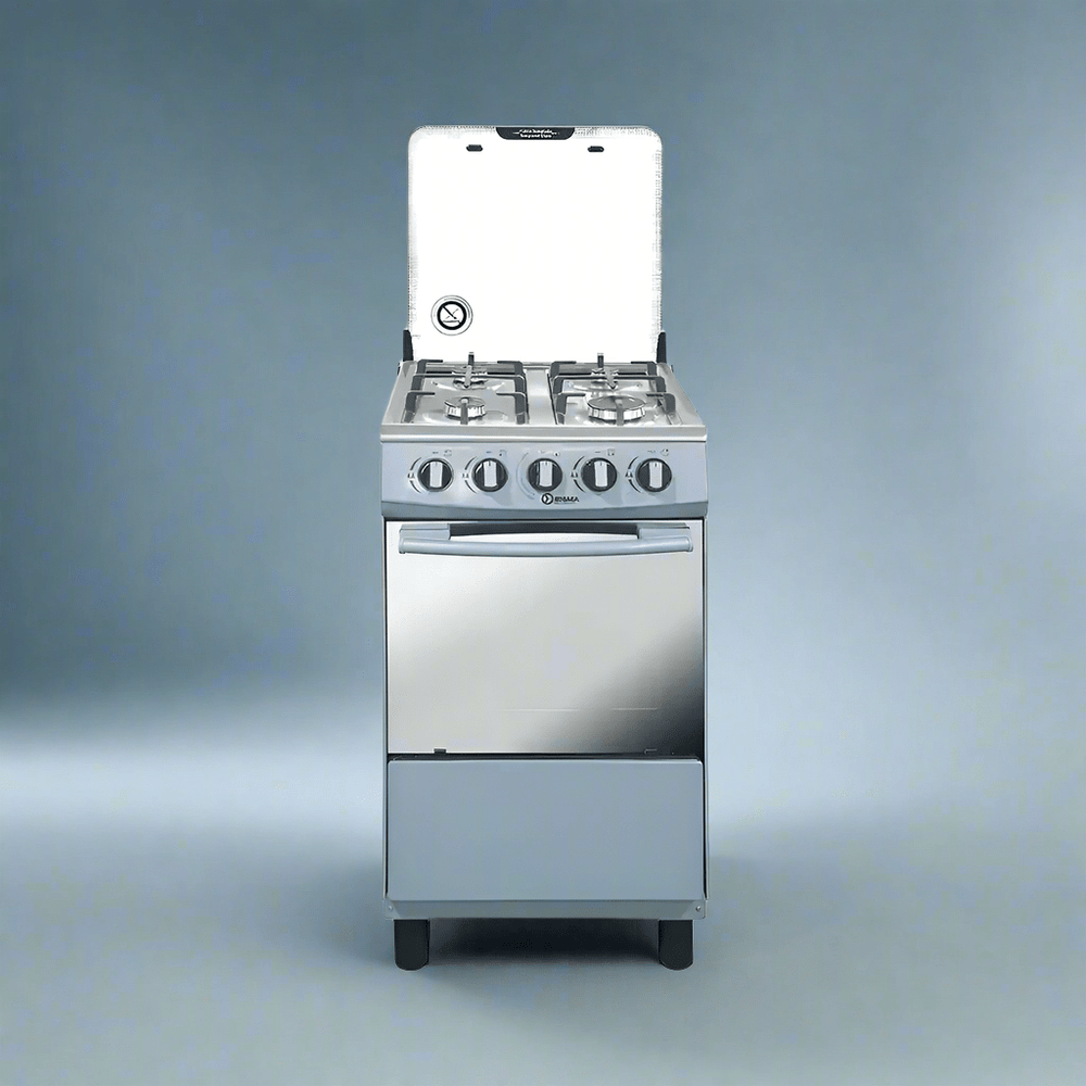 Upgrade your kitchen with the Sigma 50x50cm Four Burner Gas Cooker, built with a sleek grey stainless steel finish, auto ignition, and cast iron supports. It features a built-in gas oven and grill—making it a smart, space-saving solution for everyday cooking, baking, and roasting.