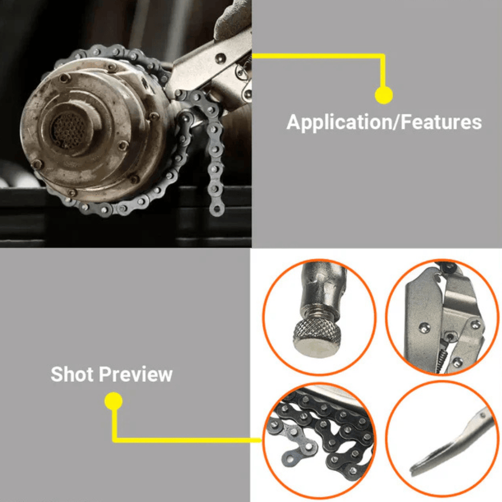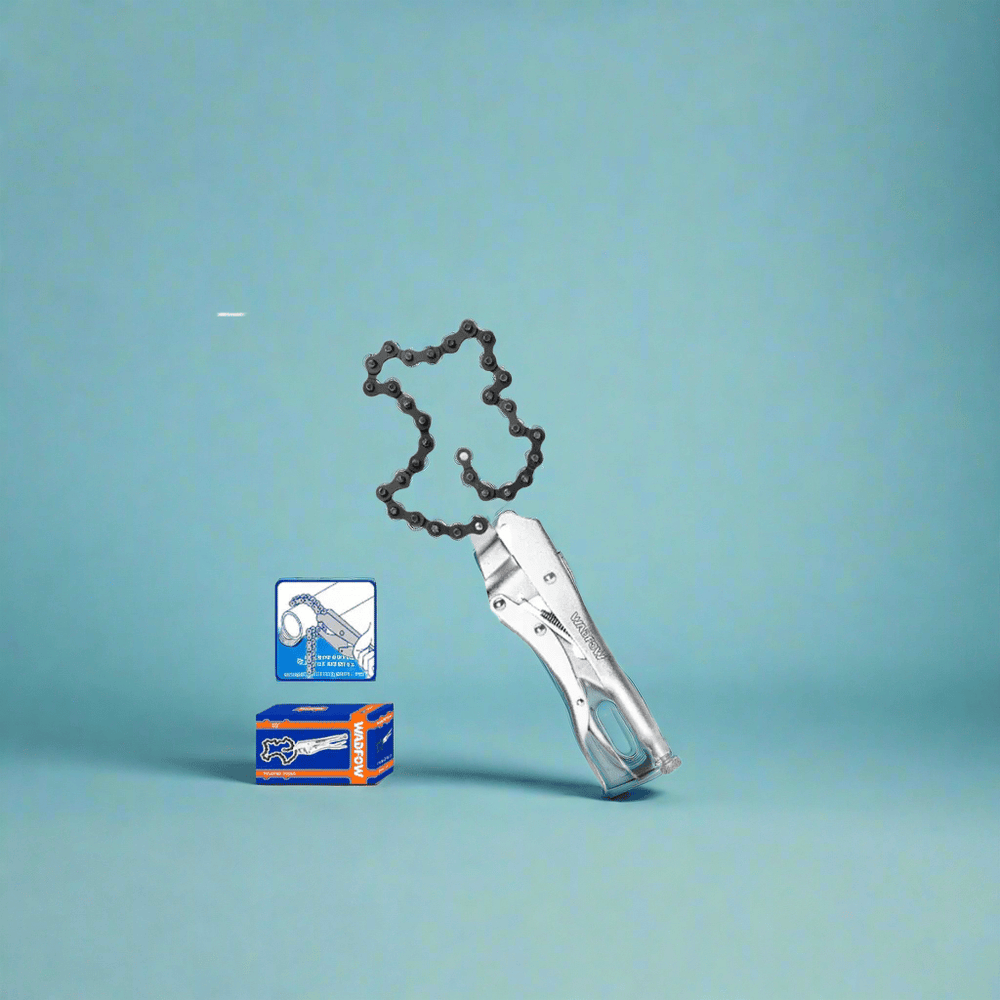 Secure irregularly shaped objects with ease using the Wadfow Chain Clamp Locking Plier. This 10-inch tool features a durable carbon steel construction with a nickel-plated finish for corrosion resistance. The 470mm (18.5") chain provides flexibility to grip pipes, fixtures, and other objects of various sizes and shapes. With a robust locking mechanism and comfortable handles, this tool is ideal for welding, automotive repair, and DIY projects.