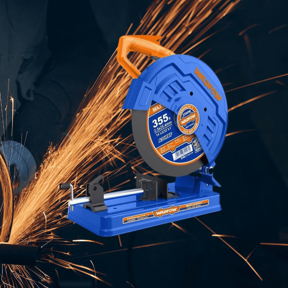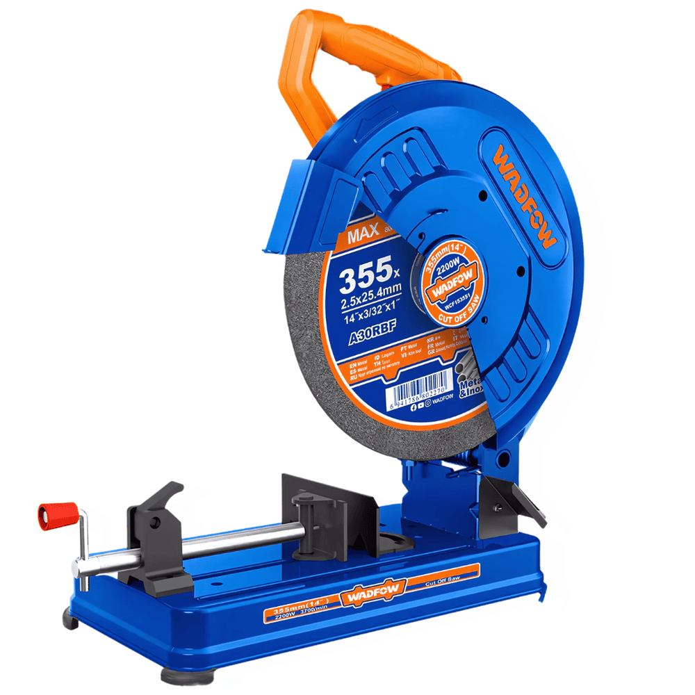Tackle heavy-duty cutting tasks with the WADFOW Cut Off Saw. Designed for professional and industrial use, this powerful 2200W tool delivers a no-load speed of 3700 RPM, making it ideal for cutting through metal, steel bars, pipes, and other tough materials. The saw includes a robust 355mm cutting disc and offers a maximum cutting capacity of up to 100mm for round pipes and 50mm for steel bars, ensuring precision and efficiency in every project.